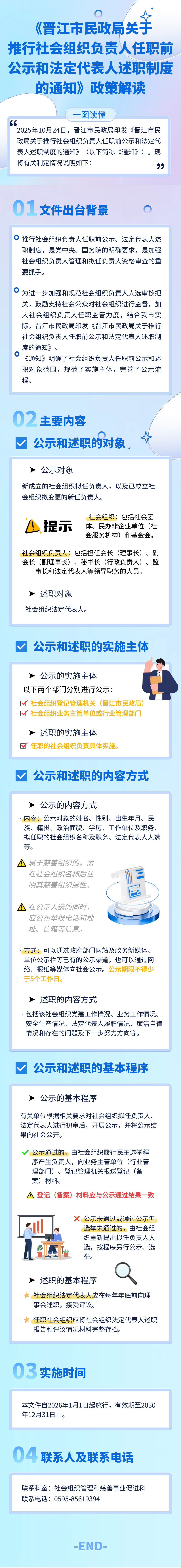 【圖解】《晉江市民政局關(guān)于推行社會(huì)組織負(fù)責(zé)人任職前公示和法定代表人述職制度的通知》政策解讀