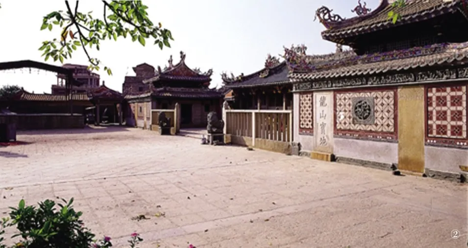 山門分內(nèi)外兩座,外山門建于明天啟三年(1623年),坊額一面書(shū)“極樂(lè)國(guó)土”,一面書(shū)“大千世界”。內(nèi)山門坊額一面書(shū)“龍山古地”,一面書(shū)“天竺鐘梵”,清康熙年間立,皆保存完好。前殿為三川脊硬山頂,插梁式構(gòu)架,石構(gòu)面墻,墻上安青石透雕螭虎窗和二十四孝人物圖案,雕工精細(xì)。因“文革”期間受到破壞,1983年曾進(jìn)行全面修葺,對(duì)其中一些受損石雕件進(jìn)行替換。正殿為重檐歇山頂,插梁式構(gòu)架,通高11.3米,前后殿屋脊上彩瓷剪粘雙龍戲珠、卷草等裝飾。前檐下立有清道光年間雕刻的輝綠巖浮雕龍柱一對(duì),雕工精細(xì),造型優(yōu)美,其龍爪所攝石珠,敲之鏘然,左若鐘聲,右作磬聲,足見(jiàn)清代石工的精巧設(shè)計(jì)。該龍柱長(zhǎng)期用玻璃罩圍護(hù),保存完好。大殿內(nèi)外石柱皆鐫刻清代莊俊元等名家撰書(shū)的楹聯(lián),掛有明代書(shū)法家張瑞圖書(shū)“通身手眼”匾、近代高僧弘一法師書(shū)“常得正念”匾和宗教界名人趙樸初書(shū)“龍山寺”匾。殿中金柱木刻盤龍,姿態(tài)生動(dòng)。鐘樓頂懸千斤銅鐘一口,懸鐘的橫木是華僑特地從南洋帶來(lái)的銑杪木,直徑只有14厘米。鼓樓頂?shù)拇蠊闹睆?米余,相傳為雕刻千手觀音的大樟樹(shù)樹(shù)尾鑿空做成的鼓身。鐘鼓樓外墻嵌4通保存完好的2米多高石碑,一為明萬(wàn)歷進(jìn)士蘇琰書(shū)“龍山寶地”,其余3通分別為清康熙五十七年(1718年)、清道光十八年(1838年)、清光緒五年(1879年)重修碑記。尤其是清光緒五年(1879年)重修碑記,記載往來(lái)臺(tái)灣的郊商、船號(hào)甚多,體現(xiàn)了海峽兩岸的歷史情緣。
