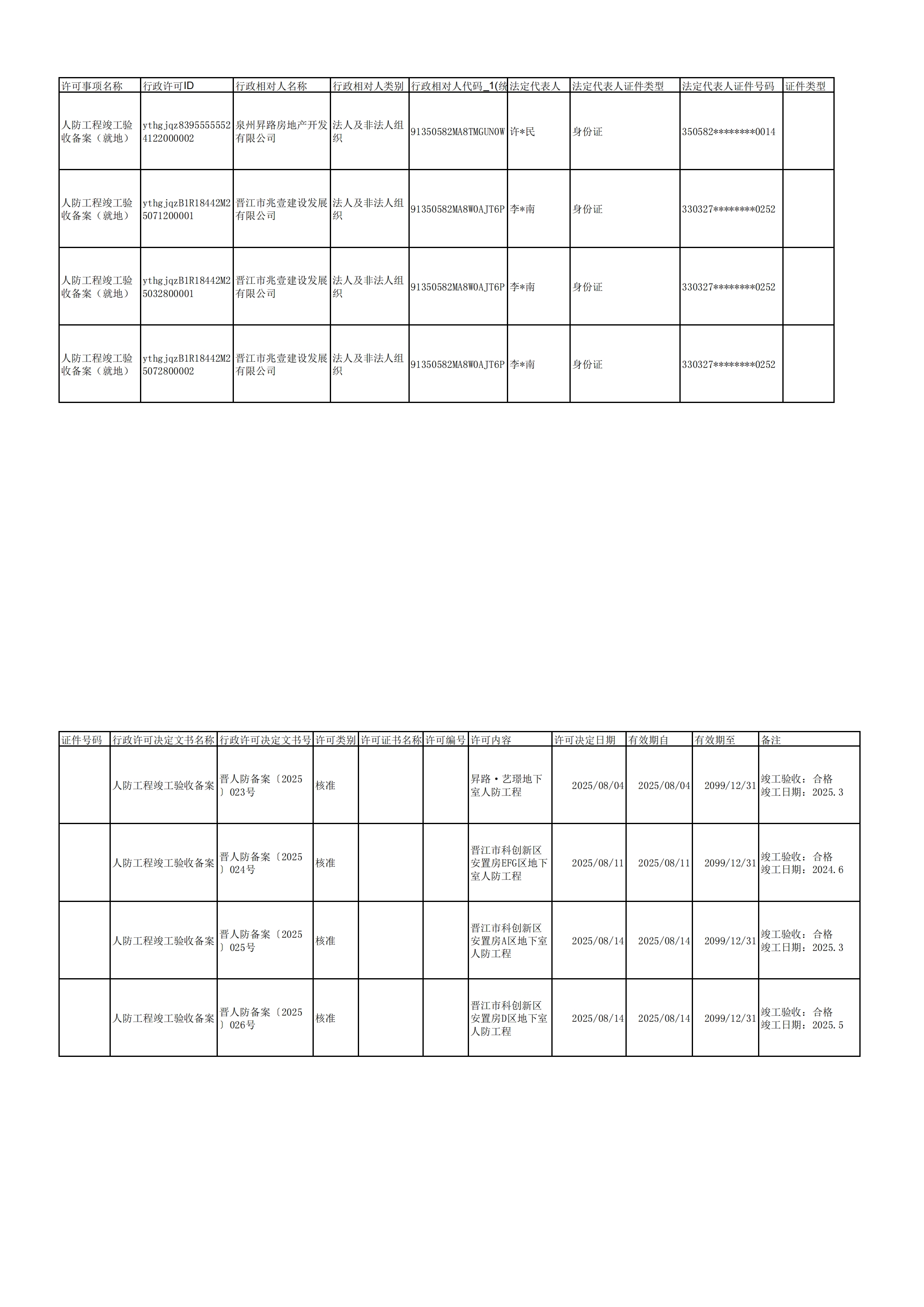 晉江國(guó)動(dòng)辦2025年8月竣工備案信息公示