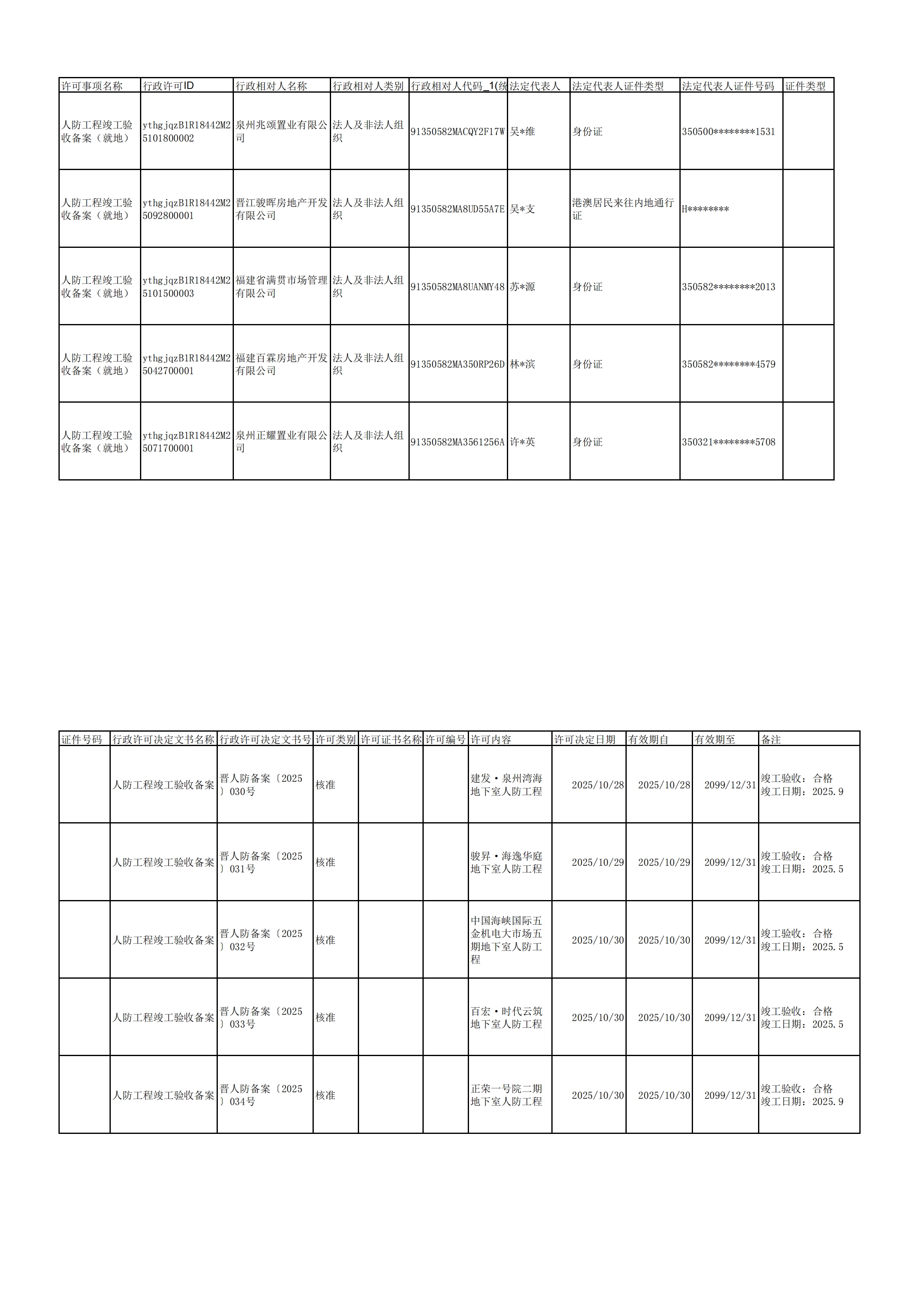 晉江國(guó)動(dòng)辦2025年10月竣工備案信息公示